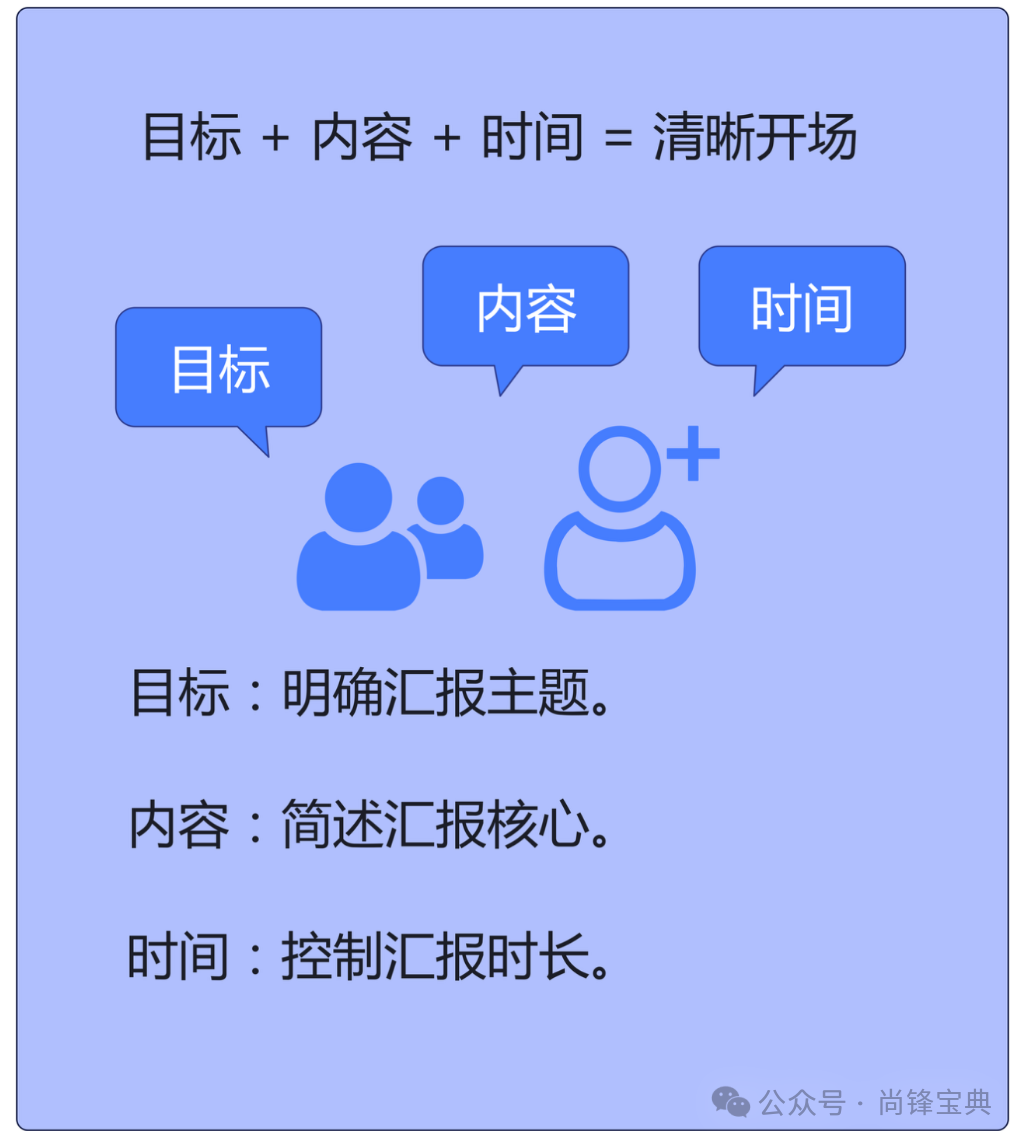 用1分钟确定核心目的:同步进展、请求决策、争取资源或汇报风险,围绕诉求筛选内容。