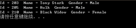 对于ToDictionary方法的两个参数,我们分别通过键和值传递其对象。这里ToDictionary被赋值,并返回了一个< int,Student >Dictionary 对象。所以我们创建该类型的对象然后存储返回的数据,最后用foreach获取学生资料。