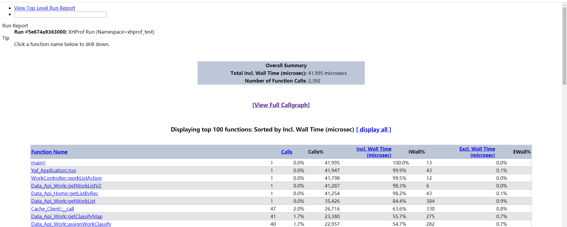 接下来访问你的项目,调用接口什么的,xhprof 就会收集调用的结果。 再次打开我们刚才配置的8066端口的项目xhprof