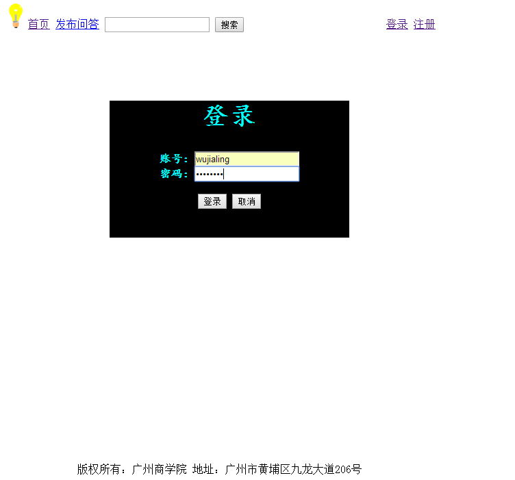 <!DOCTYPE html> <html lang="en"> <head> <meta charset="UTF-8"> <title> {% block title %} {% endblock %} 广州商学院</title> <link rel="stylesheet" type="text/css" href="{{ url_for('static',filename='css/base.css') }}"> <script src ="{{ url_for('static',filename='js/base.js') }}"></script> {% block head %} {% endblock %} </head> <body id="myBody"> <nav> <img id="myOnOff" onclick="mySwitch()" src="https://www.runoob.com/images/pic_bulbon.gif" height="20" width="20px"> <a href="{{ url_for('shouye') }}">首页</a> <a href="{{ url_for('wenda') }}">发布问答</a> <input type="text" name="search"> <button type="submit">搜索</button> {% if username %} <a class="right" href="#">{{ username }}</a> <a href="{{ url_for('logout') }}">注销</a> {% else %} <a class="right" href="{{ url_for('login') }}">登录</a> <a href="{{ url_for('zhuce') }}">注册</a> {% endif %} </nav> {% block main %} {% endblock %} <p class="text1">版权所有:广州商学院 地址:广州市黄埔区九龙大道206号 </p> </body> </html>