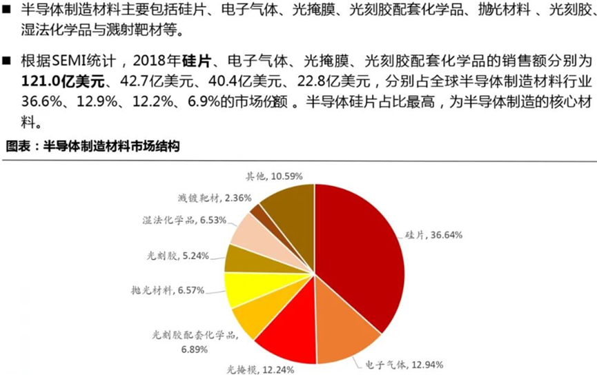 材料和设备是半导体行业的两大核心支柱,硅片占比半导体材料市场销售额高达36.6%,是晶圆厂采购材料中最重要的环节 。