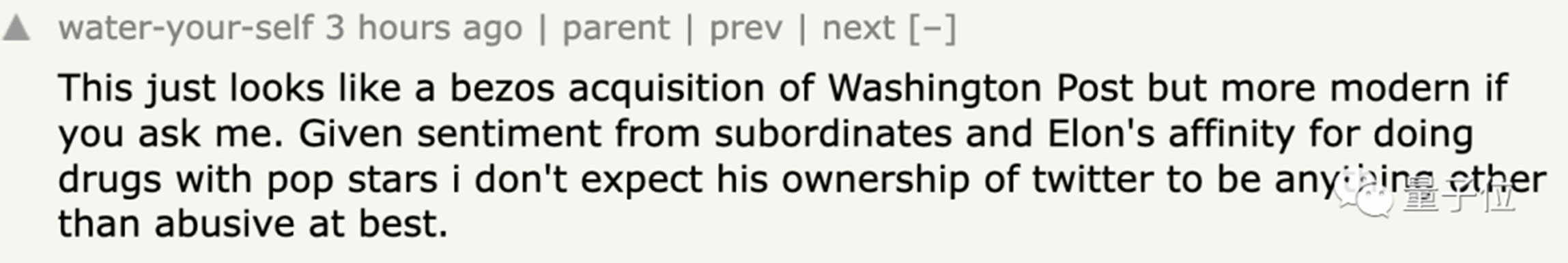 毕竟马斯克的老对头贝索斯买下了《华盛顿邮报》,就有为亚马逊帝国保驾的原因在。