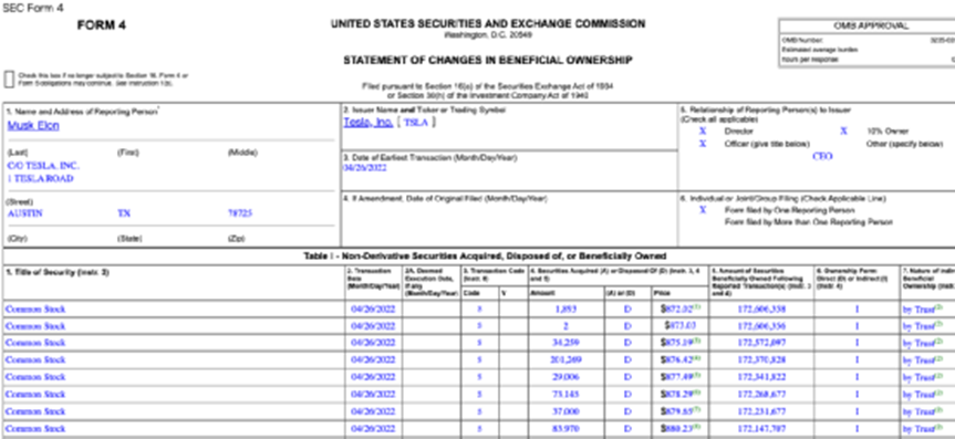 最新披露美国证监会文件显示,特斯拉CEO马斯克于近日卖出价值约40亿美元(约合265亿元人民币)特斯拉股票。