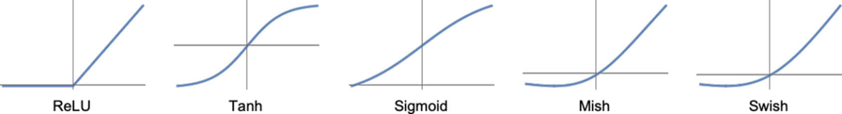 计算 w.x + b 只是一个矩阵乘法和加法的问题。激活函数 “f 引入了非线性(并最终导致了非线性行为)。通常使用各种激活函数;这里我们只使用 Ramp(或 ReLU):
