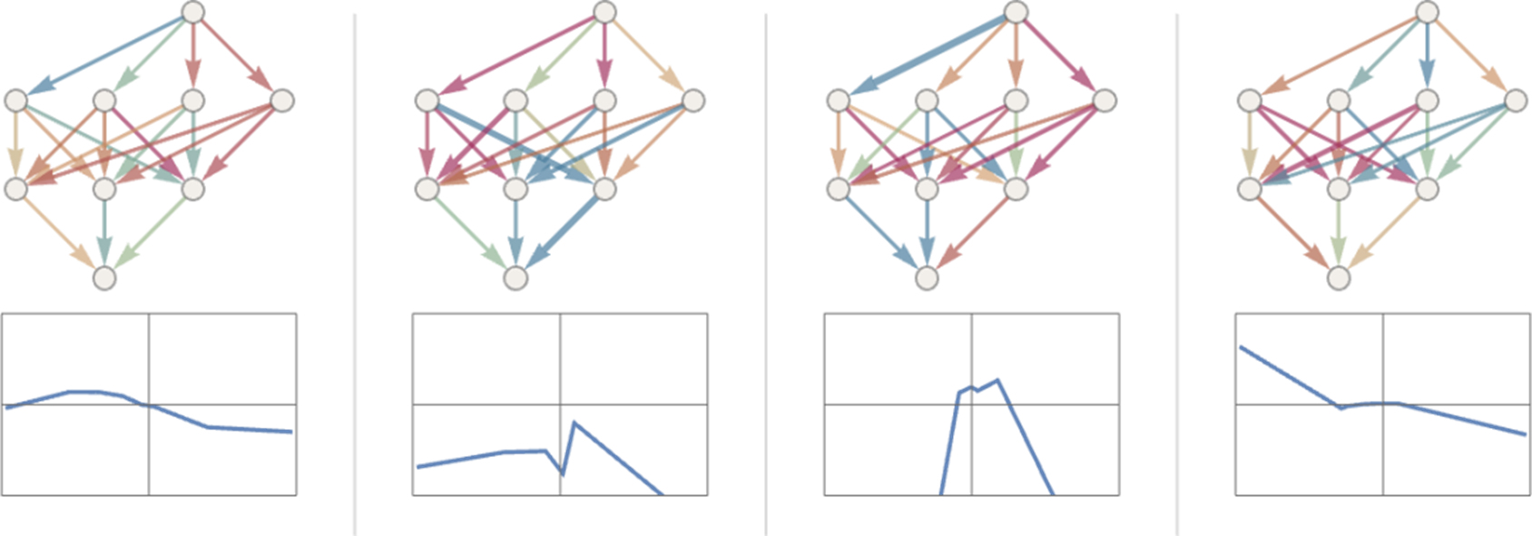 让我们看看其他一些神经网络的情况。在每一种情况下,正如我们稍后所解释的,我们都在使用机器学习来寻找最佳的权重选择。然后,我们在这里展示带有这些权重的神经网络的计算结果: