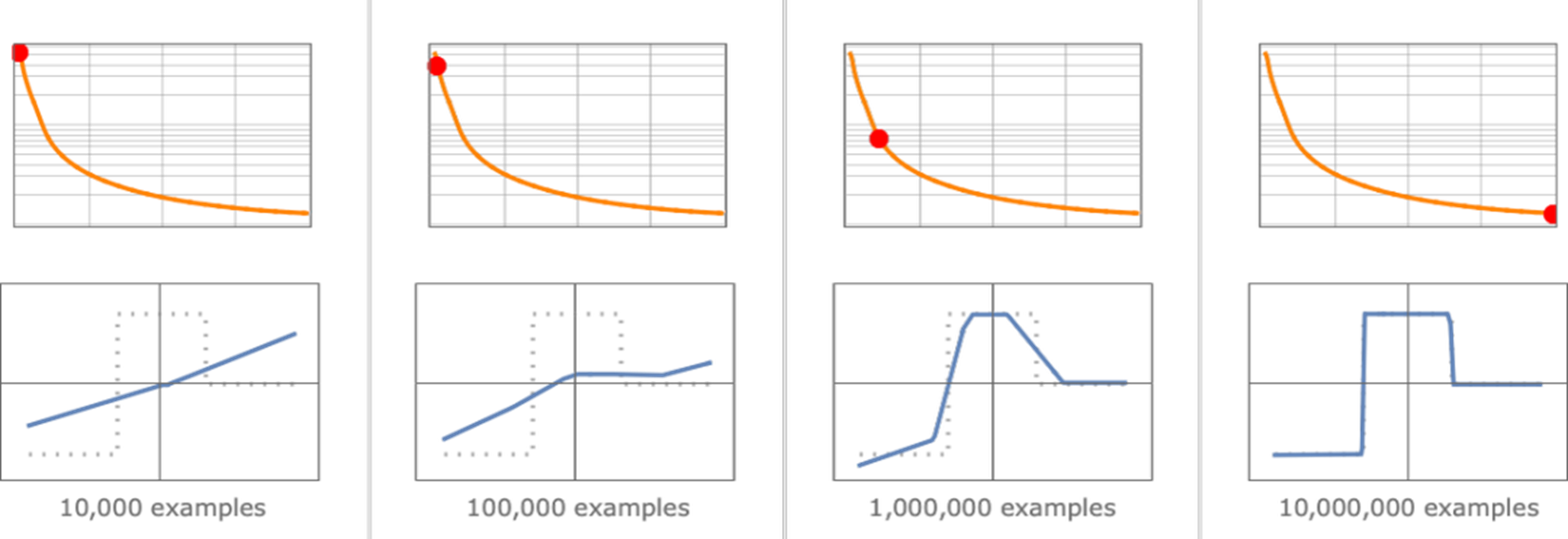 值得理解的是,从来没有一个 “无模型的模型”。你使用的任何模型都有一些特定的基础结构,然后有一组 “你可以转动的旋钮”(即你可以设置的参数)来适应你的数据。而在 ChatGPT 的案例中,使用了很多这样的 “旋钮” —— 实际上,有 1750 亿个。