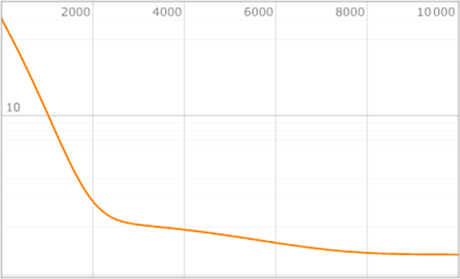 现代语言模型基于(人工)神经网络。神经网络是受人脑启发开发出的计算机,能够通过任务示例学习如何执行任务。这种机器学习形式也被称为深度学习,因为其中的网络由多个计算层组成(因此被称为“深度”网络)。在神经网络中,通过遍历任务示例并迭代修改网络参数以优化任务目标,从而实现学习。你可以将这些参数想象成一组旋钮(knob),通过左右旋动以改进目标,但区别是计算机为你进行改进,并且知道如何同时正确地朝着改进方向进行调整(得益于著名的反向传播算法)。因此,网络会遍历任务示例(通常以几百个示例为一批),并在这一过程中优化目标。以下是一个正在被优化的目标示例(称为成本函数,数值越小越好):