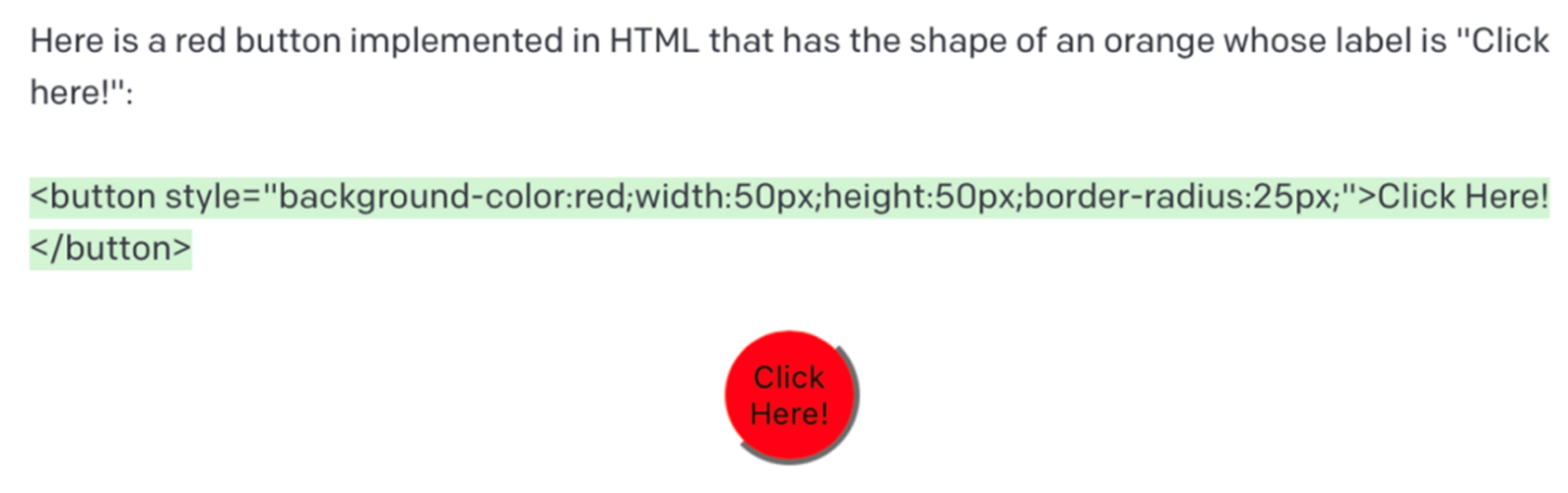 首先,GPT-3能够编写代码。例如,你可以使用GPT-3来生成(非常)简单的网站,只需在提示中描述网站的外观即可。以下是一个示例,让GPT-3使用HTML创建一个按钮: