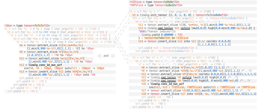 图7-4 填充平铺操作以获得固定大小的张量(高亮显示),pseudo-IR。