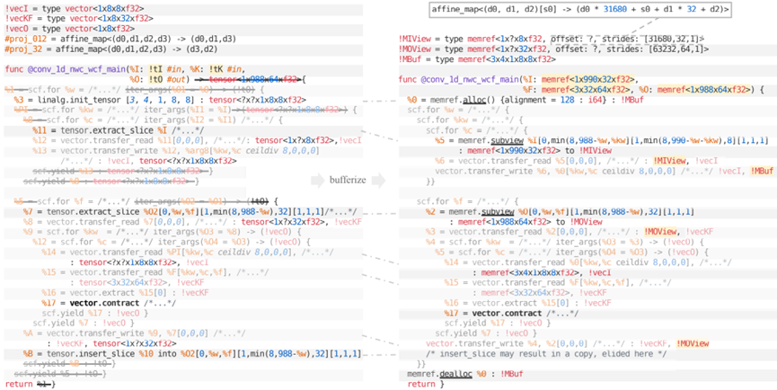 缓存是将张量值具体化到内存(memref)中的过程。有必要使张量程序通过存储在内存中的数据源具体可执行。在当前的编译管道中,这是最后一步。