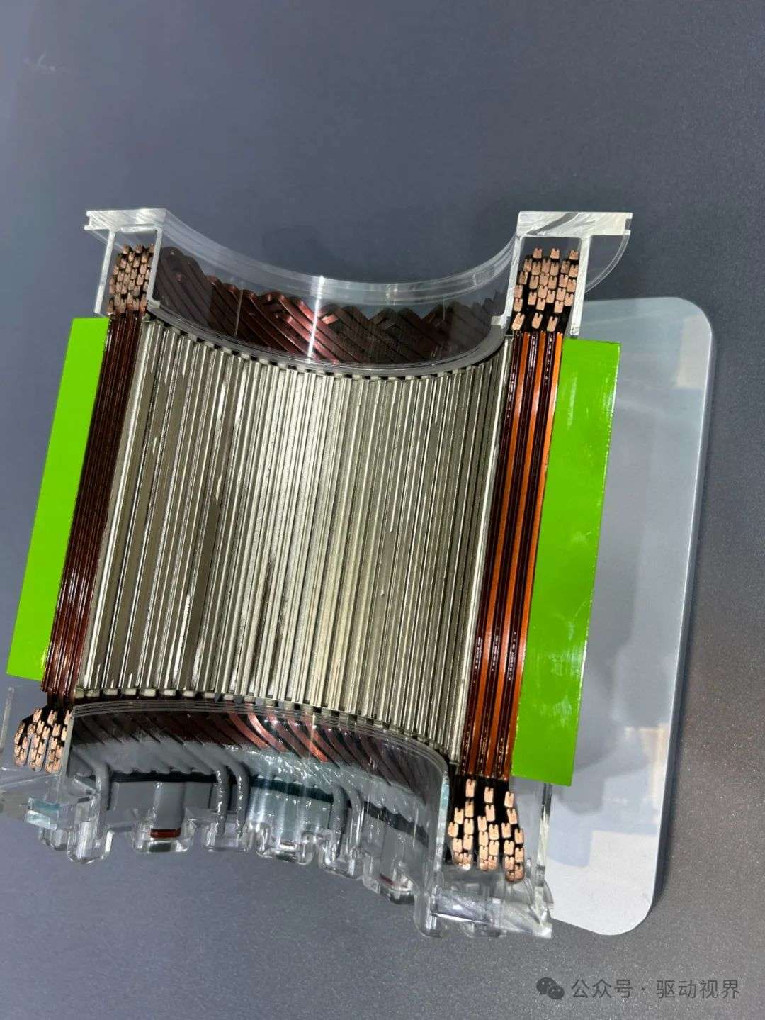 ▲舍弗勒槽内直冷定子(捂得严严实实不让你看内部结构)