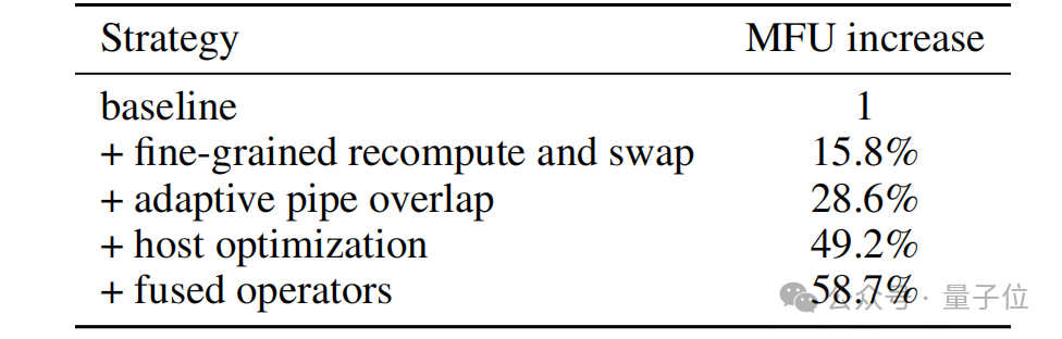 在由6000+个昇腾NPU组成的大型计算集群上,模型的算力利用率(MFU,即Model FLOPs Utilization)达到了30.0% ,和优化前相比,提升幅度高达58.7%。