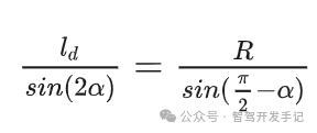 3)原理:Pure Pursuit是一种几何跟踪控制算法,也被称为纯跟踪控制算法。该算法最早由R.Wallance在1985年提出,其思想是基于当前车辆的后轮中心位置,在参考路径上以Ld前视距离匹配一个预瞄点,车辆以一定的角度向预瞄点行驶。是指几何路径跟踪算法,通过预瞄点计算转向角,使车辆沿圆弧轨迹逼近目标路径。算法核心在于动态调整预瞄距离 Ld,使其与车速正相关(Ld=k⋅v)。假设车辆后轮中心可以按照一定的转弯半径𝑅行驶至该预瞄点,然后根据前视距离𝑙𝑑、转弯半径𝑅、车辆坐标系下预瞄点的朝向角𝛼之间的几何关系来计算前轮转角𝛿。