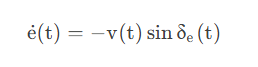 使用线性自行车运动模型,可以得到横向误差的变化率: