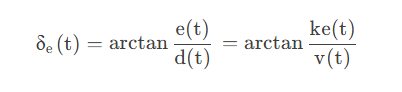 其中d(t)与车速相关,最后用车速v(t),增益参数k表示。随着横向误差的增加, arctan函数产生一个直接指向期望路径的前轮偏角,并且收敛受车速v(t)限制。