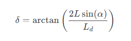 o α:车辆航向与预瞄点连线的夹角(rad)。
