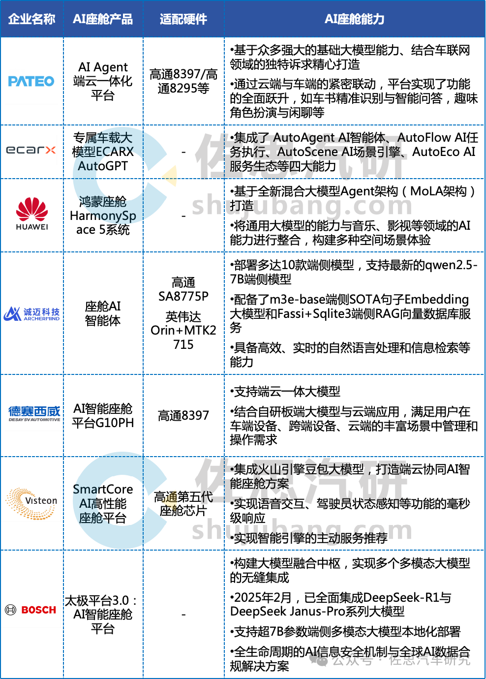 来源:佐思汽研《2025年主机厂和Tier1智能座舱平台(硬件&软件)及供应链搭建策略研究报告》