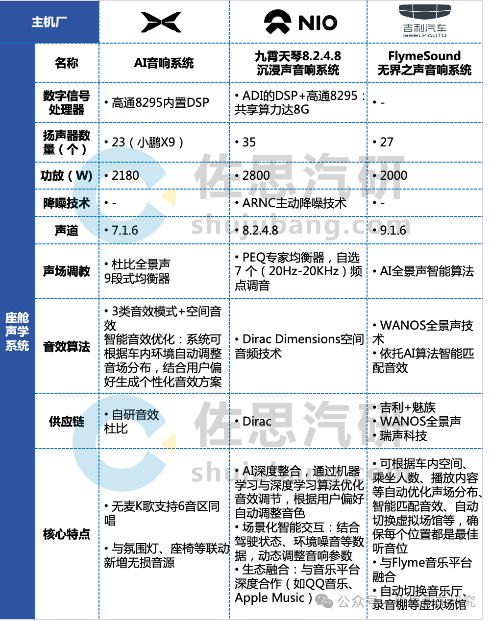 部分OEM主机厂智能座舱声学软硬件系统布局