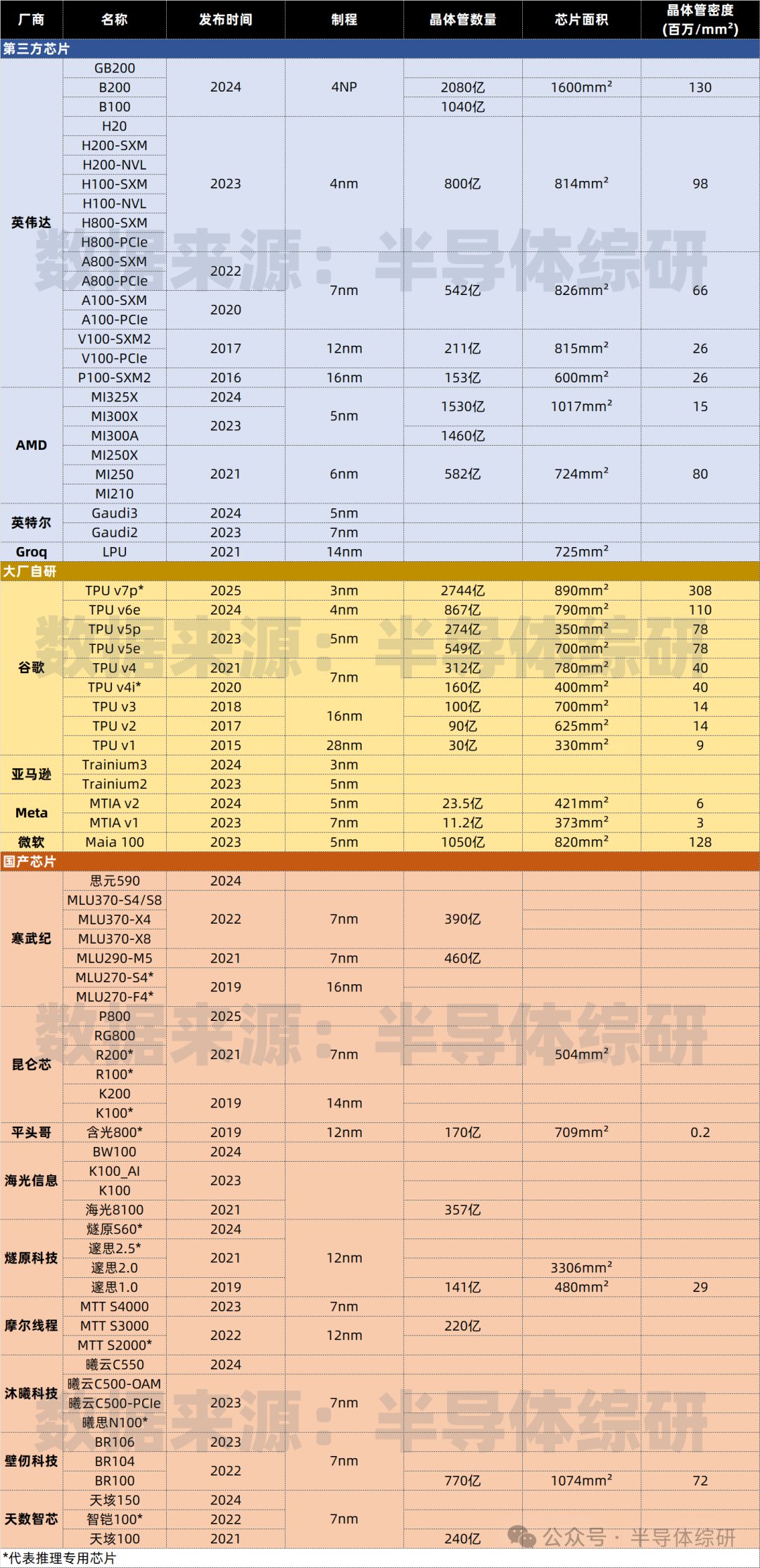 大厂自研:谷歌最新的TPU Ironwood(TPU v7p)和亚马逊的Trainium3都使用了最先进的3nm,Meta和微软使用了5nm。