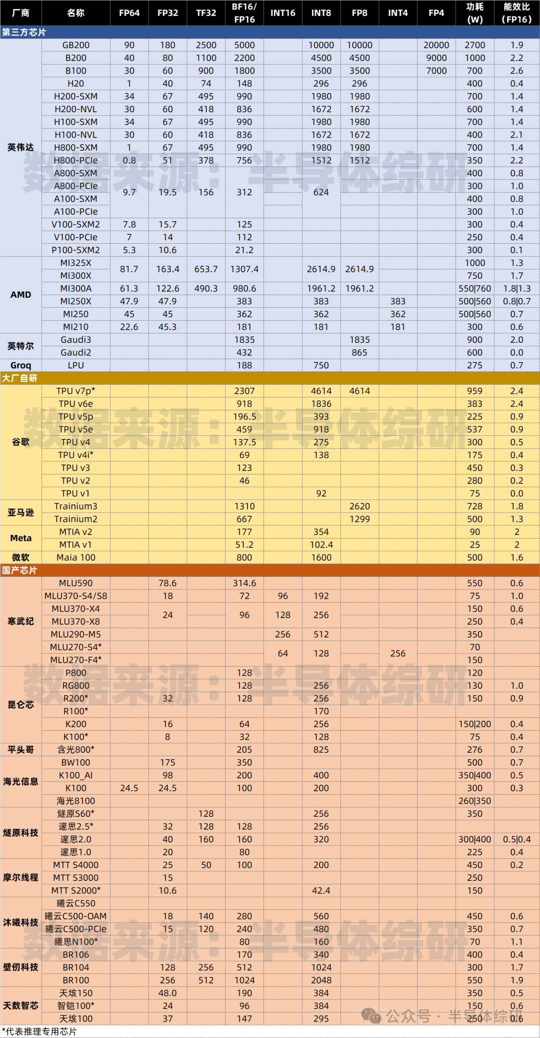 地球上算力芯片参数汇总、整理、对比