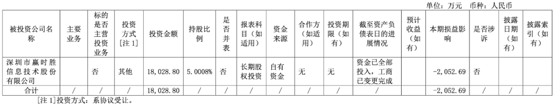 重大股权投资: