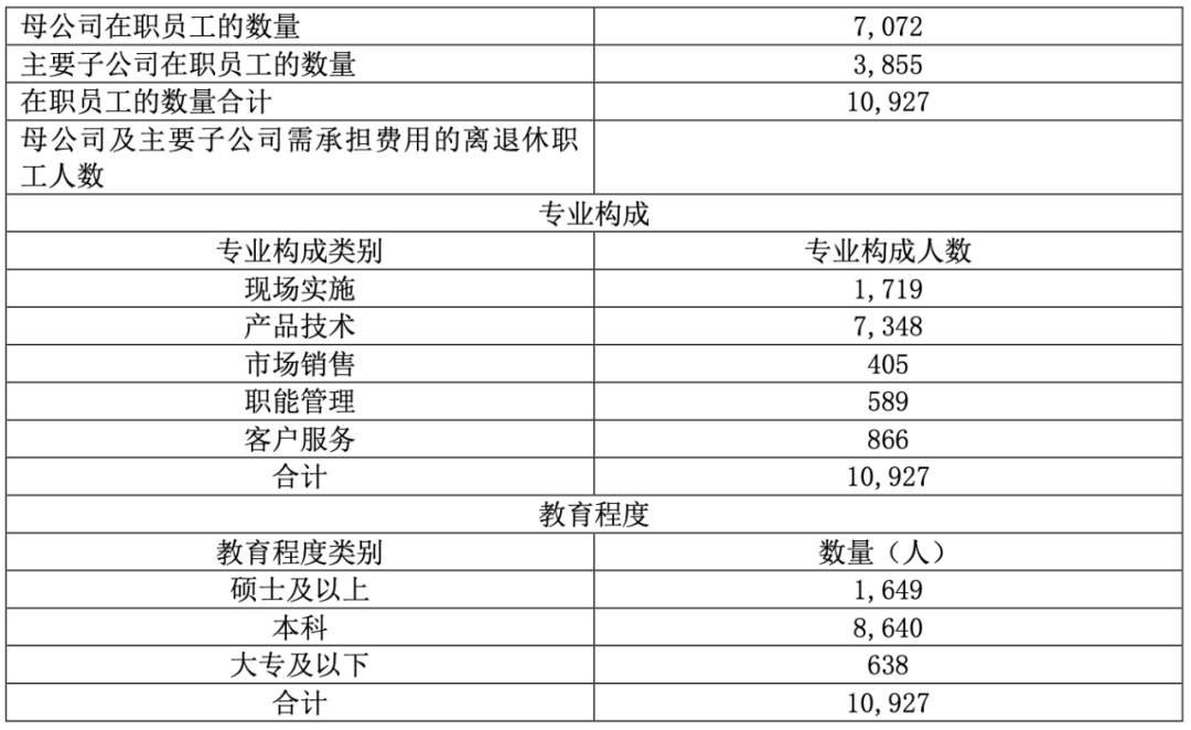 员工 10927 人(13189 人),减少 2262 人:
