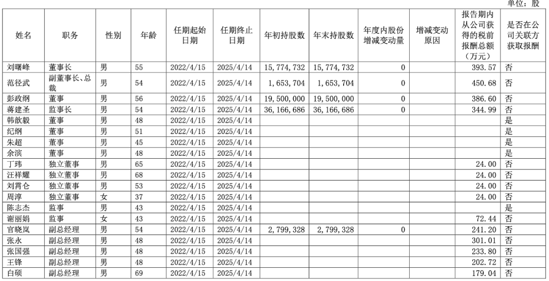 现任及报告期内离任董事、监事和高级管理人员持股变动及报酬: