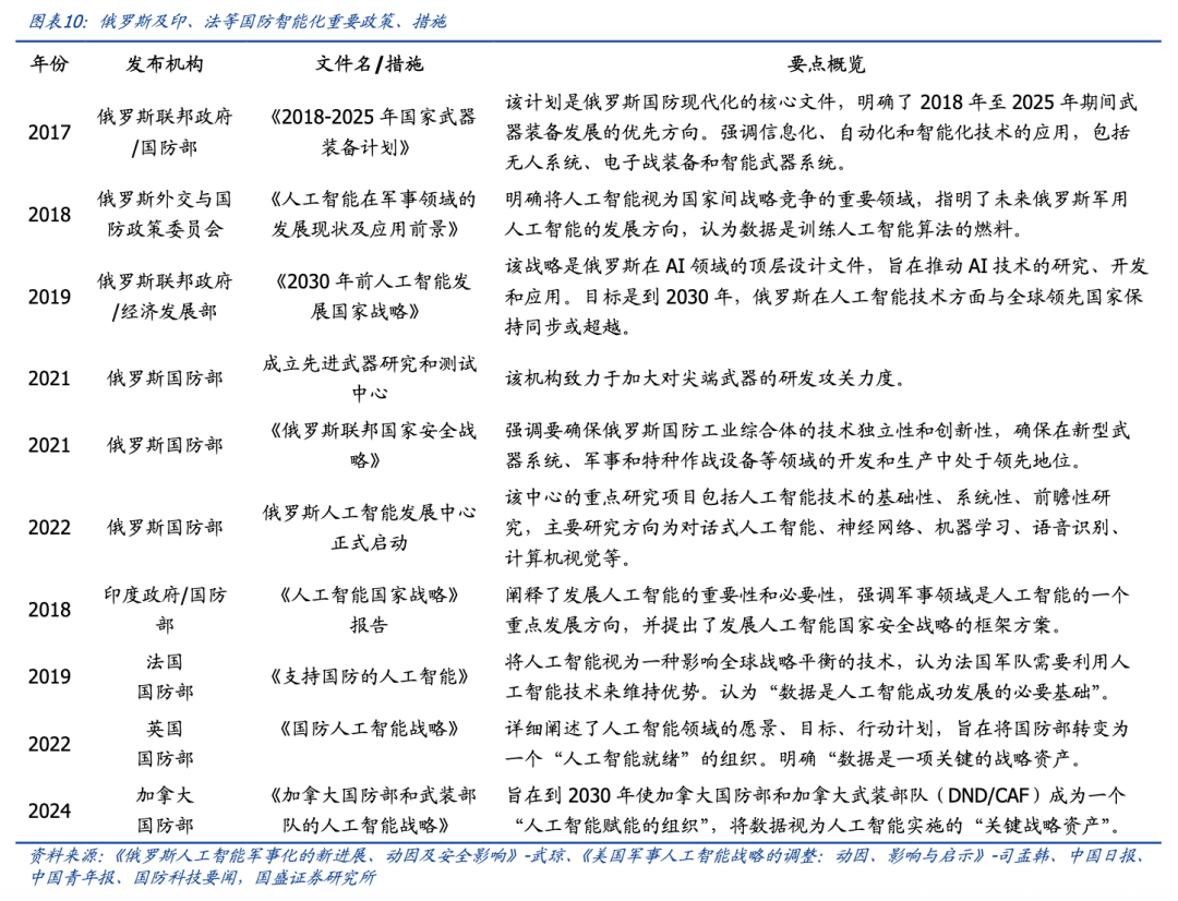 不仅公司,各个国家也早已开始重视并战略布局国防人工智能。各国围绕算法优势、装备智能化、作战形态创新展开激烈竞争。