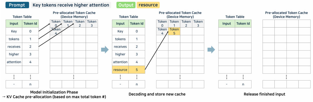 TokenAttention: 管理 token级别的 KV cache,使用 token 表格管理每个 token 的存储位置。