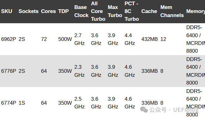 这三款CPU中的6776P,将作为Nvidia于3月份在GTC上发布的DGX B300平台【2】 的主CPU(而不是Grace CPU)。