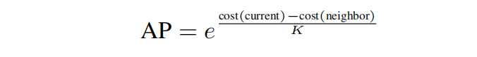 * 接受概率:模拟器使用概率算法,根据以下概率函数接受后续的小芯片布局: