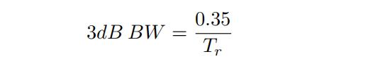 带宽最终受互连线上信号的上升时间(Tr)和下降时间(Tf)限制。在对称运行中,Tr=Tf。数字通道的3dB带宽计算公式为: