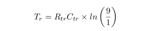 上升时间Tr指的是信号上升沿从 10% 上升到 90% VDD 所需的时间,计算公式为: