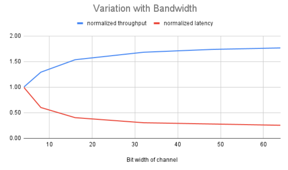 结果如下图所示。将带宽提高两倍并不一定会使吞吐量提高两倍或延迟降低两倍,这种关系取决于具体的实现方式和遵循的规范。