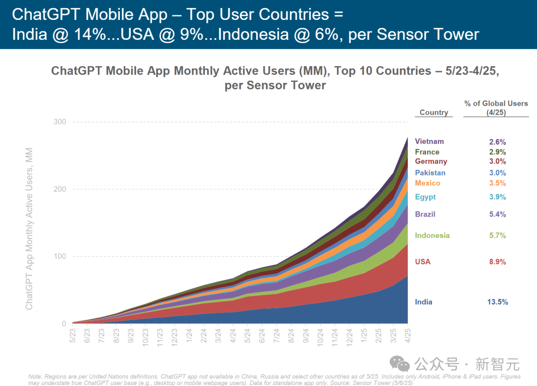 是的,如今ChatGPT最大的月活用户竟是来自印度,占比13.5%,直接超越美国本土的8.9%。
