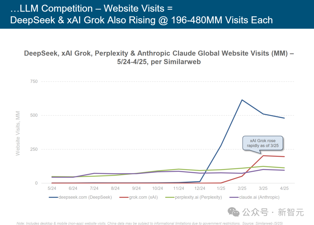 图表显示,DeepSeek和Grok已经明显地后来居上了。