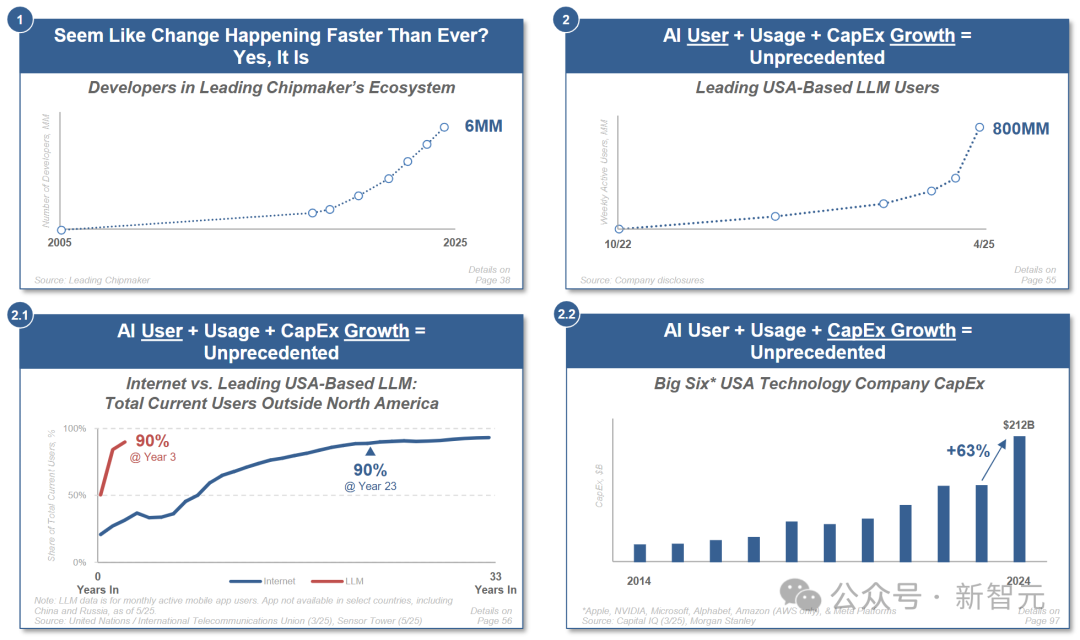 如今,AI的用户增长、使用量和资本支出,都是前所未有的爆炸式增长,已经达到了人类史上最快的技术渗透速度。