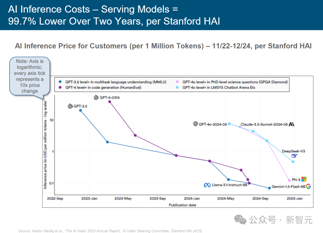 如今,虽然训练一个顶级模型的成本高达10亿美元,在过去8年里飙升了2400倍,但推理成本在两年内已经暴降了99.7%。