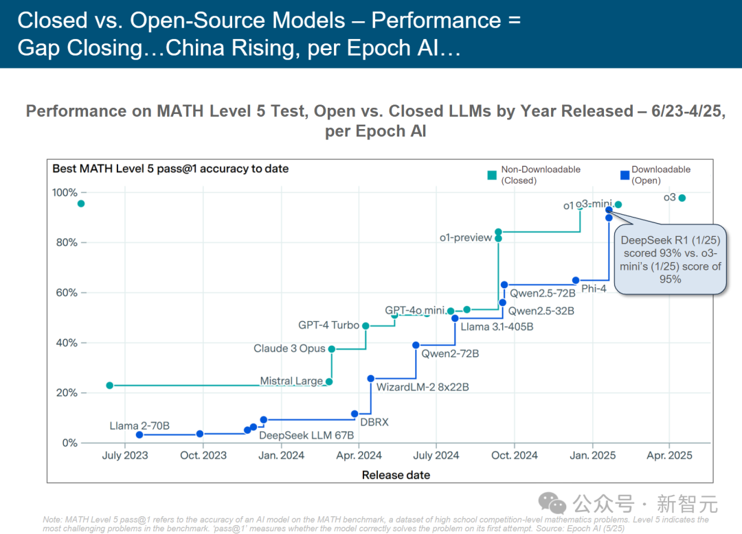 与此同时,DeepSeek-R1已经在MATH Level 5数学基准测试中取得了93%的高分,非常接近OpenAI o3-mini模型的95%。