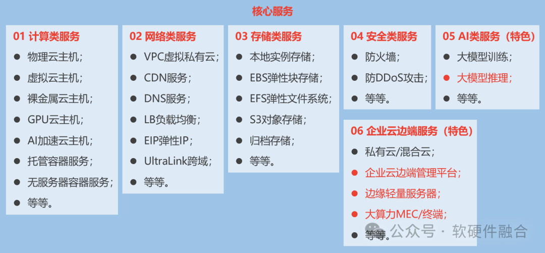 传统公有云所属的IaaS级的计算、网络、存储等基础云服务;