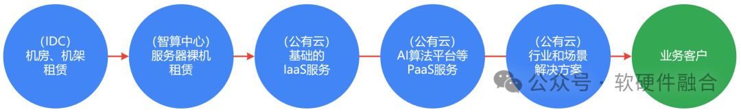 为了更好的帮助最终的业务客户智算业务落地,不但要提供计算的硬件设备和计算集群,还要提供面向智算大模型场景的IaaS和PaaS服务。并且,在此基础上,还要提供更加丰富的行业解决方案。