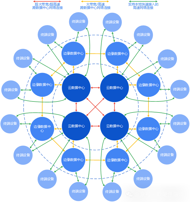 云-边连接:就近接入物理距离最短的云数据中心,跟其他云数据中心或边缘数据中心的链接,通过接入的云数据中心中转。
