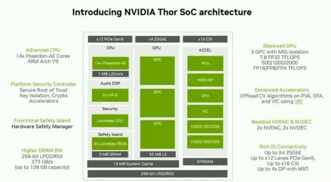 英伟达Thor SoC芯片架构框图(图片来源:英伟达)