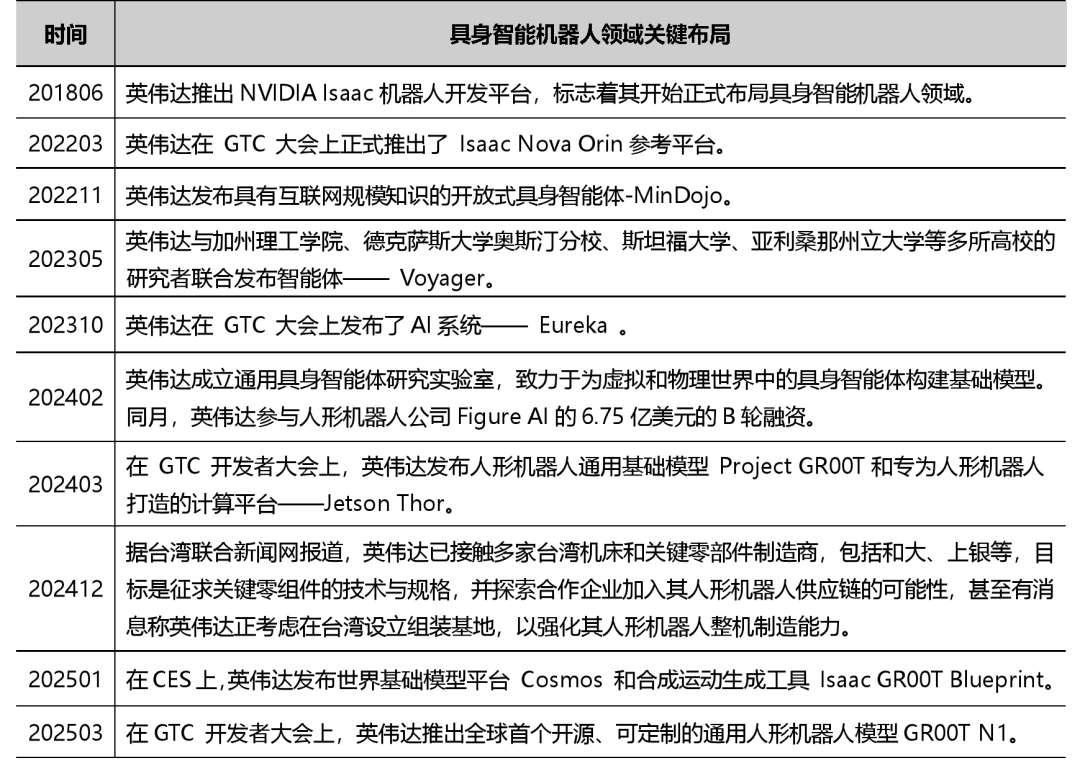 英伟达具身智能领域关键布局(机器觉醒时代制表)