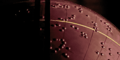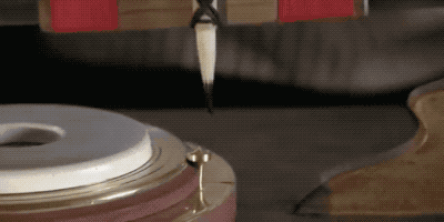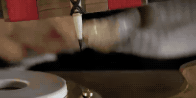 笔和一根绳索相连,绳索则绕在可以控制圆盘旋转的轴上面,这样一来,笔向外移动的速度就等于圆盘的转速,等速螺线就能画出来了。接着工人再根据画好的等速螺线进行雕刻。