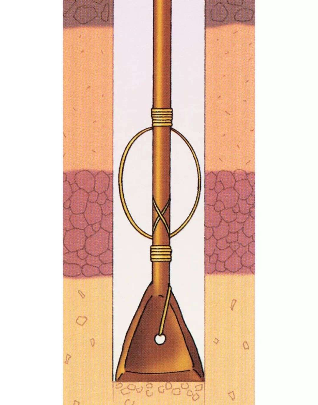 这种鱼尾形状的钻头是为了在第一次钻井的时候打开一个较大口径的通道。 图片来源:Drilling and Gas Recovery Technology in Ancient China, Zhong Changyong and Huang Jian. Wictle Offset Printing, 1997.