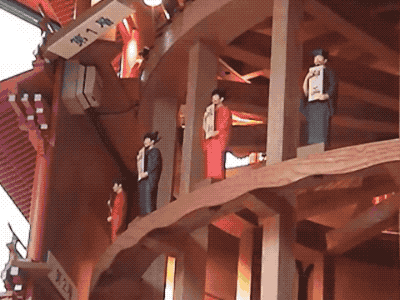 水运仪象台有12米高,7米宽,包含4个系统和超过400个零件。它的正面有个塔,塔里会有假笑男孩出来叮铃铃报时。