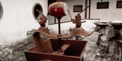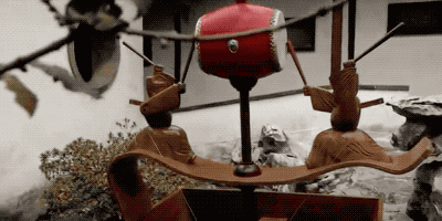 这个奇怪的车车,叫做记里鼓车。这是世界上第一个里程计,出现在西汉时期。军队行军的时候就会推着这辆车车走,每过500米,上面的太鼓达人就会敲鼓通知大家。