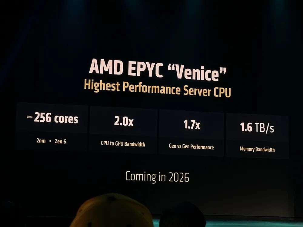 Helios集成了AMD EPYC “Venice” CPU、MI400系列GPU和Pensando “Vulcano” NIC网卡。 其中AMD EPYC “Venice”服务器CPU将采用2nm制程,基于Zen 6架构,最多256核,CPU-to-GPU带宽翻倍,代际性能提升70%,内存带宽达到1.6TB/s。