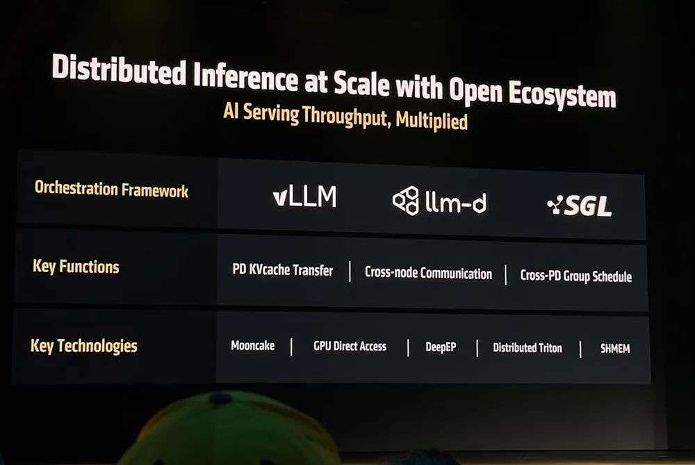 2、分布式推理:ROCm 7引入了一种健壮的分布式推理方法,利用与开源生态系统的协作,包括SGLang、vLLM、llm-d等开源推理框架。通过采用开放策略,ROCm 7与这些合作伙伴一起构建、共同开发共享接口和原语,从而在AMD平台上实现高效的分布式推理。